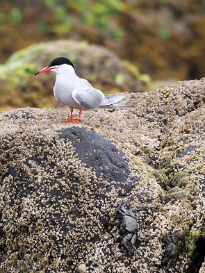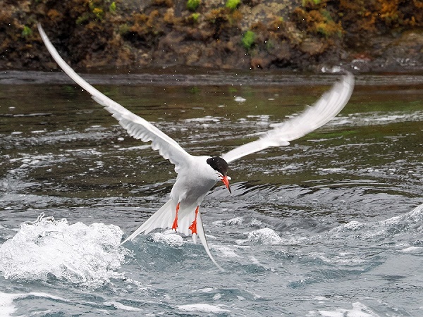Hier konnten wir auch schön Küstenseeschwalben (Sterna paradisaea) bei der Jagd auf die kleinen Fische beobachten. Sie kreisen elegant über der Küste und stürzen sich manchmal wie Eisvögel ins Wasser, um die Fische zu fangen. Oft stoßen sie schrille Rufe aus, besonders wenn sie Nistplätze verteidigen, denn sie sind sehr territorial. Man sollte nie zu den Nestern gehen, denn Seeschwalben sind streng geschützt und ihre Nester liegen oft einfach am Boden in der offenen Lavafläche.