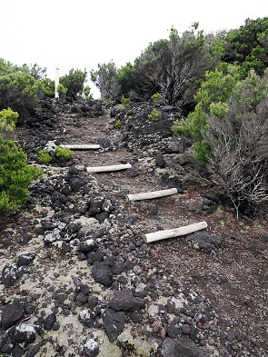 Rundum sieht man für die Laurissilva-Wälder typische Vegetation, mit Baumheide (Erica azorica) und Azorianische Picconie (Picconia azorica).