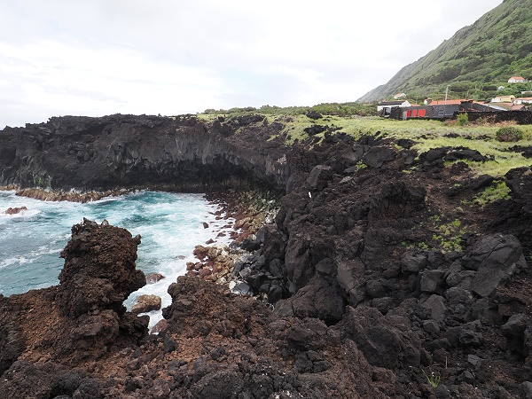 Eine von Zeit und Elementen geformte Küste ist für Touristen ebenfalls ein Highlight. Unser Ziel war ein Naturwunder, das wir schon oben vom Aussichtspunkt aus entdeckt hatten. Hier befindet sich ein grandioser natürlicher Bogen aus schwarzem Basalt. Der Arco da Fajã da Ribeira d’Areia ist ein beliebtes Fotomotiv und etwas weiter gibt es kleine natürliche Becken mit warmem Wasser, in denen man im Sommer baden kann.