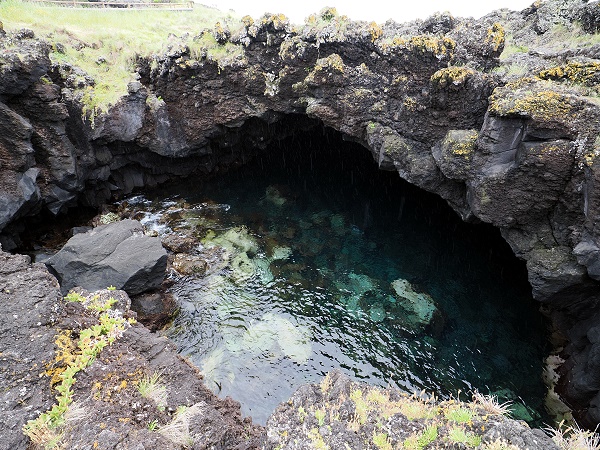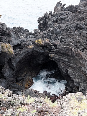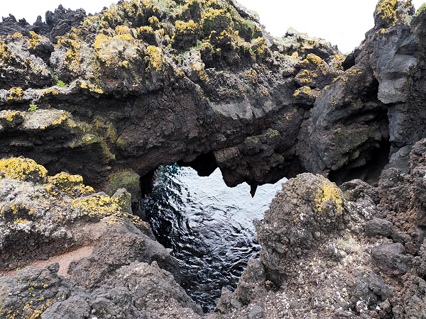 Am Parkplatz selbst kann man bereits zwischen den Lavafelsen eine eindrucksvolle Landschaft erkunden. Die erkaltete Lava hat hier neben einem Naturpool mehrere Unterwassergrotten geschaffen, die mit vier großen Schloten nach oben geöffnet sind. Bei starkem Wellengang schießen dort Wasserfontänen viele Meter hoch. Bei unserem Besuch war das Meer ruhig, so dass wir stattdessen zwischen den Felsen klettern konnten.
