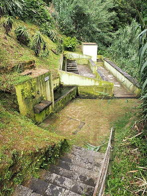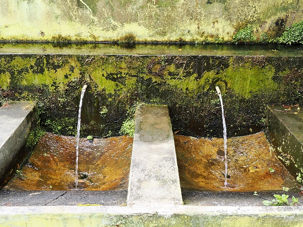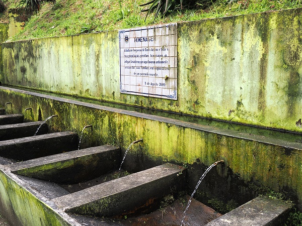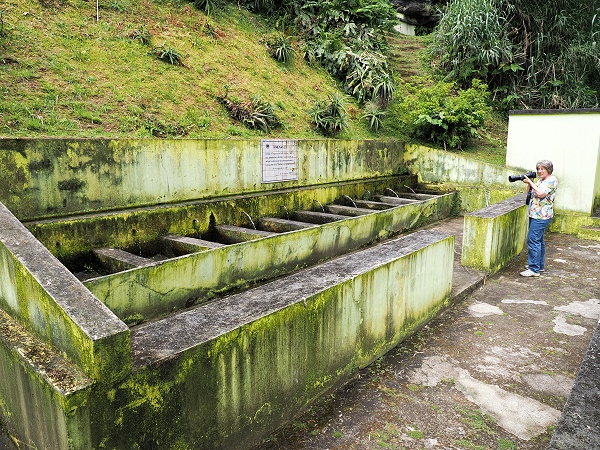 Der an der Küste weiterführende Wanderweg war gesperrt. Man sollte aber nicht versäumen, hier noch einmal um die Ecke zu gehen. Denn dort befinden sich restaurierte steinerne Wasserbecken, die mit integrierten Waschbrettern aus Stein früher von der lokalen Bevölkerung als öffentliche Waschöglichkeit für Kleidung verwendet wurden. Diese Waschtröge wurden im Rahmen der Restaurierung des Wanderwegs wiederhergestellt und sind heute von Moos überzogen. Sie laden zu einem kurzen Abstecher in die malerische grüne Umgebung ein, umrahmt von kleinen Wasserläufen.