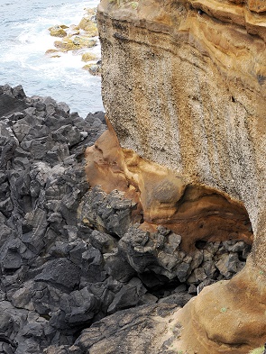 Auf einmal kam sogar die Sonne raus und die Szenerie war wirklich schön, mit immer wieder anderen Ausblicken auf die bizarren Felsen und das blaue Meer mit tosender Brandung.