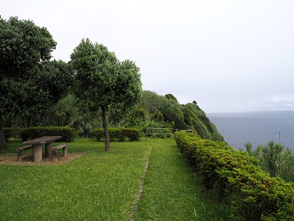 Es gibt Wanderrouten, die an diesem Ausichtspunkt vorbei führen. Zuerst erreicht man den beliebten Picknickpark Fonte Grande, hier war alles noch nass vom letzten Regen und kein Mensch weit und breit. Der eigentliche Aussichtspunkt liegt nur etwa 200 m entfernt. Von hier aus hat man einen schönen Blick auf die nördliche Küste mit steilen Klippen, auf die Ortschaften Santo António, Capelas und São Vicente Ferreira, sowie den Atlantik. Bei Sonnenschein sicher noch beeinruckender.