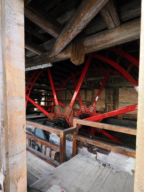 Das Wasser treibt das große Rad an, dieses bewegt mit einer Kurbelwelle die zwei beweglich aufgehängten Pumpstangen zum etwa 170 Meter entfernten Soleschacht. Dort wird die Kraft über eine Balanciermechanik zu den Pumpen umgelenkt und die Pumpen befördern die Sole in die Gradierwerke. Von der Umlenkmechanik führt ein Holz-Gestänge etwa 140 Meter weiter zum Gradierwerk und treibt dort die Pumpe zur Berieselung der Saline an.