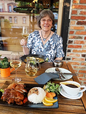 Es gibt hier Cross-Asia, also von Thai, Vietnamesich über Sushi und dazu leckere Cocktails. Mit zwei Cocktails haben wir erst einmal angefangen und den warmen Abend im Freien genossen. Die Speisekarte ist groß, aber nicht überladen. Die von uns probierten Gerichte schmeckten frisch, waren gut gewürzt und lecker. Michael hatte ein Curry, ich die sehr gute Entenpfanne, bei der die Sauce extra serviert wurde. Anstelle einer Nachspeise tranken wir dann noch einen weiteren, anderen Cocktail und zahlten am Ende des Abends 90,00 Euro.