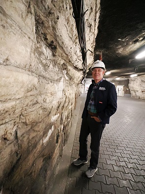 Die Fahrt geht weiter zum ehemaligen Großbunker des Bergwerkes, eine riesige Halle, in der noch heute der größte untertägig eingesetzte Schaufelradbagger der Welt steht. 250 Meter lang, 22 Meter breit und bis zu 17 Meter hoch diente sie bis 1993 zur Speicherung von bis zu 50.000 Tonnen Rohsalz, um die Produktion über Tage auch an den Wochenenden aufrecht zu erhalten. Heute hat der Konzertsaal mit der Akustik eines gotischen Kirchenschiffes.