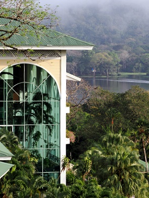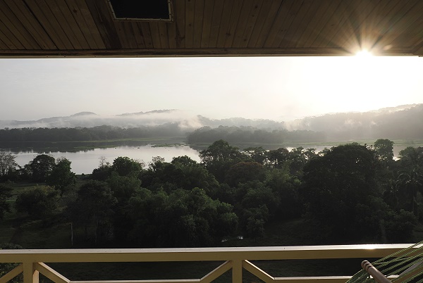 Von hier oben in der 7. Etage hat man einen atemberaubenden Sonnenaufgangs-Panorama-Rundblick auf große Teile des Resort. Man sieht den Pool, die Jogging-und Mountain-Bike-Strecke im Park und über den Rio Chagres hinweg blickt man direkt zum Regenwald. In der Morgen-und Abenddämmerung kann man die lauten Rufe der Mantelbrüllaffen vernehmen und erlebt natürlich auch ein Vogelkonzert.