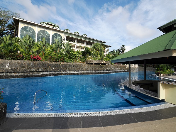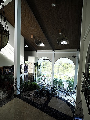 Das Gamboa Rainforest Resort wurde im Jahr 2000 im Stil der Kolonialzeit erbaut und alle Räumlichkeiten haben hier gemäß dem vielen freien Platz an diesem abgelegenen Ort überall eine beeindruckende Weite. Das gilt vor allem für die 3 Etagen hohe Lobby und die angrenzende Bibliothek, aber auch für das umliegende Land mit alten Bäumen und vielen blühenden Sträuchern.