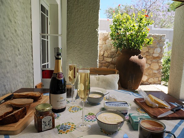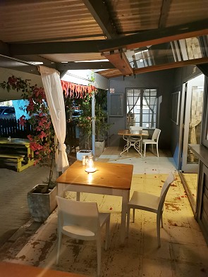 Wir wurden herzlich und ein wenig exzentrisch von dem charmanten Gastgeberpaar Theunis und Michael begrüsst. Die beiden wohnen direkt nebenan und führen das Restaurant seit 27 Jahren, ohne Alkohol-Lizenz. Das bedeutet "bring your own", seinen Wein oder Bier sollte man selbst mitbringen.