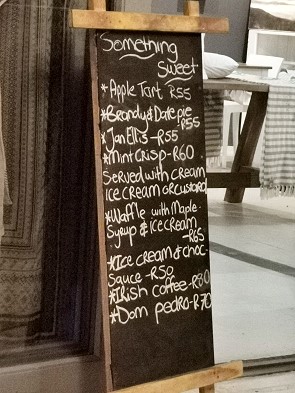 So waren wir mit Ute und Peer an einem Abend in der Karoo Kombuis angemeldet. Ein charmantes, gemütliches Restaurant unweit der Hauptstraße mit einer kleinen Auswahl, aber außergewöhnlich leckeren Speisen.