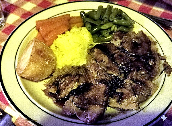 Zur Auswahl stehen hier zwei Vorspeisen, drei Hauptgerichte und zwei Desserts und diese Speisekarte mit erstklassiger Hausmannskost ist seit 27 Jahren unverändert.