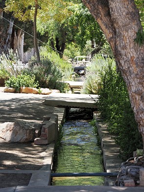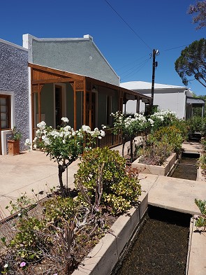 Das Wasser fließt durch Schwerkraft vom Dorps River aus den Swartbergen direkt in den Ort. Ein System aus Sperrklappen und manuell betriebenen Schleusen versorgt auf diese Weise zahlreiche Häuser und Farmen entlang des Weges nach einem vordefinierten Zuteilungsplan. Dieses System ermöglicht es den Bewohnern, trotz der trockenen Karoo-Umgebung üppige Gärten und Obstplantagen zu bewässern. Die Wasserrechte sind oft an die Grundstücke gebunden und werden seit Generationen nach festen Zeiten vergeben. Da muss man zu dieser eine Stunde parat stehen, um die Zuleitung zum eigenen Wasserbassin zu öffnen und nach Ablauf der Zeit wieder zu schließen.