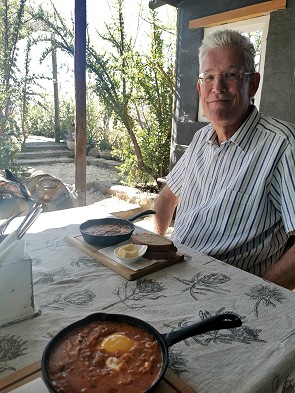 Da die Besitzer Muslime sind, bekommt man hier keinen Speck und keinen Alkohol. Aber das bestellte Shakshuka, pochierte Eier in Tomatensauce mit vielen verschiedenen Gewürzen, war ebenso fantastisch wie der Cappucino. Sicher der beste Kaffee in der Stadt, und der zweitbeste der ganzen Reise.
