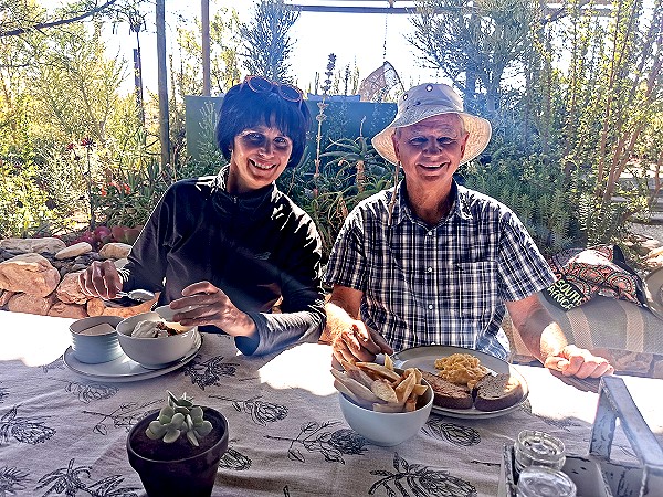 Dieses Mal sind wir endlich auch mal über den Koppie trail gelaufen, der vorbei an 100 verschiedenen Pflanzenarten der Karoo führt und an der Bergsig Street oberhalb der Hauptstrasse startet. Irgendwie hatten wir es bisher nie hinauf auf den Hügel geschafft, wenn wir im Ort waren. Dieses Jahr wurden wir von Marina und Hans zum Frühstück eingeladen, an einen ganz besonderen Ort den ich weiter unten beschreibe. So machten wir uns, am letzten Tag des Aufenthalts, am Morgen zusammen mit Hans auf den Weg. So konnten wir das leider nicht zu anderer Tageszeit noch einmal widerholen. Wir müssen also noch einmal zurück nach Prince Albert, was uns sicher nicht schwer fällt.