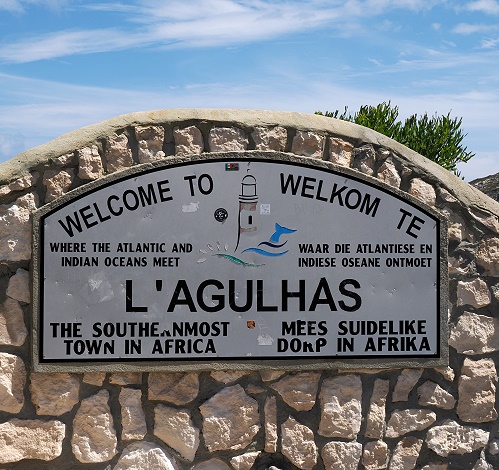 Der geografisch definierte südlichste Punkt Afrikas befindet sich auf den Koordinaten etwa 34°49'58" S, 20°00'12" E. Hier treffen der Atlantische Ozean im Westen und der Indische Ozean im Osten aufeinander. Viele Touristen glauben aber immer noch, der Süden Afrikas würde sich am Cape Point befinden. Immer noch vorhanden ist der Steinhügel mit einer Kupfertafel, der die genaue Position markiert.