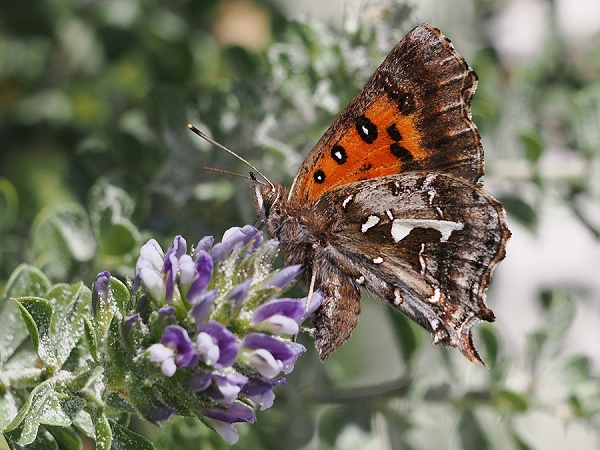 Der Sand der Dünen ist gleißend weiß hier. Der Strandabschnitt ist lang, windoffen und weitgehend unberührt. Auf vielen Flächen war der Sand bis auf den kiesigen Untergrund weggepustet. Keine Promenade, kein Lärm, keine Bausünden im Hintergrund. Nur die teilweise bewachsenen Dünen, das Meer und der Himmel. Im Vergleich zu Agulhas und Struisbaai wirkt "Die Plaat" fast zeitlos und ist der perfekte Gegenpol zur touristischen Entwicklung der Region. In den Dünen fanden wir blühende Pflanzen, die von unzähligen Schmetterlingen besucht wurden.