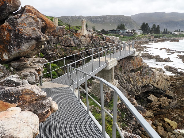 Dahinter folgt Kleinmond. In diesem hübschen Ort kann man in der Nähe des Hafens in einem der Restaurants und Geschäfte oder am schönen Strand eine kleine Rast einlegen. Es gibt eine Lagune und den bekannten Strand von Kleinmond. Danach fährt man um den Botrivier Vlei herum und erreicht den bekanntesten Ort der Küste: Hermanus mit seinen vielen Vororten wie Vermont, Onrus oder Sandbaii. Hier hat sich in den letzten Jahren viel getan, das gefällt uns nicht mehr. Man hört überall nur Deutsch und alles ist ziemlich zugebaut, auch der Verkehr hat sehr stark zugenommen.