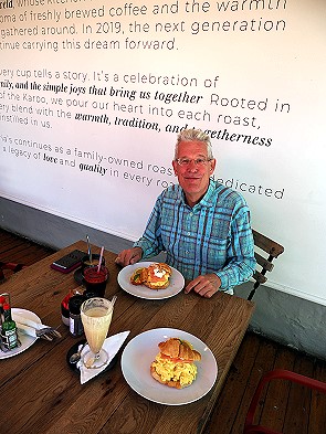 Am zweiten Tag waren wir dann um die Ecke bei Maria's Coffee Roastery and Cafe etwas später frühstücken, ein relativ neuer Anlaufpunkt für Kaffeeliebhaber. Es ist nicht nur ein Café, sondern eine eigene Rösterei, in der man den Prozess direkt miterleben kann. Die Atmosphäre im Innenhof ist großartig.