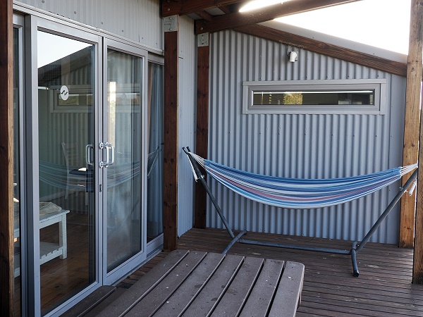Dazu gehört neben dem bereits erwähnten Hotpool auch eine Hängematte auf der Terrasse und eine gut ausgestattete Küche. Hier gibt es einen Gasherd, eine Mikrowelle, Toaster, Wasserkocher, einen großen Kühlschrank und Töpfe und Geschirr. Die große Holzveranda ist perfekt zum Frühstücken oder für die Vogelbeobachtung geeignet, hier gibt es auch einen Grill.