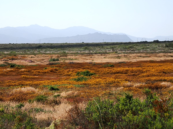 Vor einigen Jahren sind wir schon mal am Rocherpan Nature Reserve vorbei gefahren, diesmal wollten wir unbedingt dort wohnen. Leider hatten wir uns dazu nicht die ideale Reisezeit ausgesucht, aber im Südwinter halten wir uns nicht in Südafrika auf. Das Namensgebende Vlei mit seinem reichen Vogelleben war im Oktober nicht mehr mit Wasser gefüllt, dazu muss man ziemlich früh um Juli/August vor Ort sein, wenn der Papkuils-Fluss nach Regenfällen in Piketberg Wasser führt.
