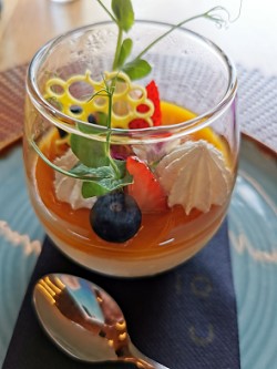 Die Nachspeisen im Menü standen gar nicht auf der normalen Karte, man hatte die Wahl zwischen Panacotta mit Passionsfrucht und Tiramisu. Auch hier hatte Michael mit dem Panacotta eindeutig die bessere Wahl getroffen, denn das war kalt und erfrischend. Mein Tiramisu war warm und fast flüssig. Ich denke, es war gerade frisch gemacht und hatte noch nicht lange genug in der Kühlung gestanden, aber das hätte man ja auch sagen können. Auf meine Nachfrage wiegelte die Kellnerin ab und meinte, ihr Chef will das so, da käme heißer Espresso drauf. Nach diesem Essen ging es mir leider nicht wirklich gut für die nächsten Tage.