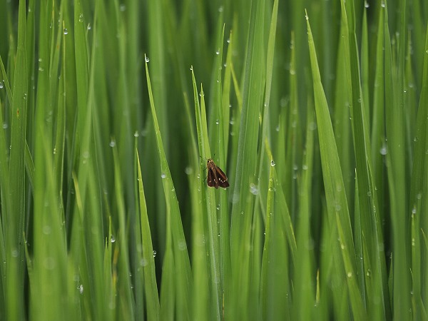 Inmitten der Reisfelder bewegen sich zahlreiche kleine Körnerfresser, die in Schwärmen durch das reifende Getreide ziehen. Mit etwas Geduld lassen sie sich auf den Zäunen und Büschen am Feldrand nieder, so dass wir sie dort gut fotografieren konnten.