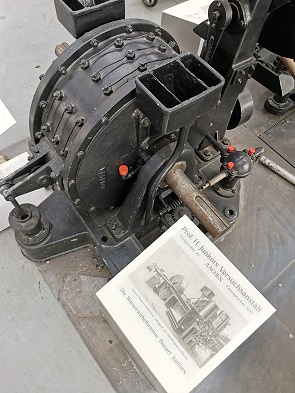 Auch sehr technisches Zeug, in das man sich als Besucher erst einmal einlesen muss - Information ist genug vorhanden. So wie bei der Junkers-Wasserwirbelbremse E4K, eine hydraulische Bremse mit einer maximalen Drehzahl von 2300 U/min zur Leistungsbestimmung großer Motoren oder ein Handkalorimeter, ein Messgerät zur Bestimmung des Heizwertes von Gasen, ebenfalls ein Junkers Patent von 1892 und der Ausgangspunkt für alle weiteren wärmetechnischen Geräte, die er entwickelte und herstellte.