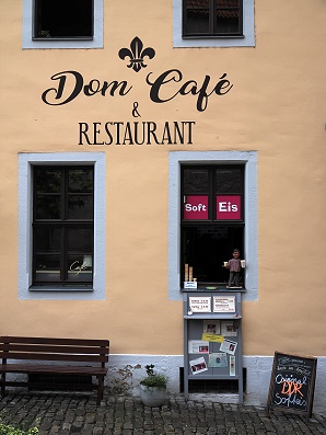 Am Domplatz befand sich lange Zeit ein vom Vermieter betriebenes Café. Das wurde mittlerweile geschlossen, es gibt aber noch einen Verkauf am Fenster. Angeboten werden Kaffee, Getränke und DDR-Softeis – sehr beliebt, vor allem wegen des netten Plauschs mit dem aufgeschlossenen und freundlichen Menschen am Fenster. Gäste der Ferienwohnung dürfen sich hier auch ein kostenloses Begrüßungseis abholen, das war lecker und erfrischend.