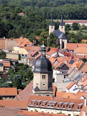 Die Stadtkirche St. Wenzel liegt südlich vom Marktplatz und ist ein spätgotischer Bau. Ein Blick ins Innere lohnt sich natürlich auch, denn hier gibt es eine barocke Ausstattung mit einem Hochaltar von 1680, Gemälde aus der Werkstatt Lucas Cranachs d. Ä. und die sehr bedeutende Hildebrandt-Orgel. Der Neubau erfolgte nach 1426, eine barocke Umgestaltung des Inneren 1724. Bemerkenswert ist auch die Grabplatte August Leubelfings, Page des Schwedenkönigs Gustav Adolf, der wie sein König 1632 in der Schlacht bei Lützen fiel.