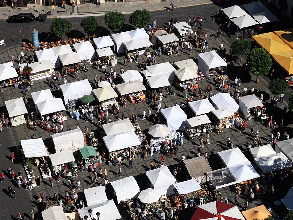 Unter dem Turm liegt der Marktplatz, auf dem gerade ein Töpfermarkt stattfand. Den haben wir dann im Anschluss an die Turmbesteigung besucht.