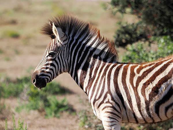 Im Gegensatz zum vorher besuchten Mountain Zebra Nationalpark bei Cradock mit seinen weiten Plateaus ist der Addo stellenweise bergig und dicht bewachsen. Das macht die Tiersuche schwieriger, aber spannender. Addo beherbergt fünf der sieben wichtigsten Vegetationszonen Südafrikas.