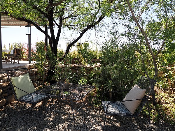 Hierher kommen auch viele Einheimische, man kennt sich. Nette Plätze verteilen sich hier im Garten mit Pflanzen und Aussicht und an kann sich aussuchen, wie man gerne sitzen will. Ein entspannter Platz mit sehr netten Betreibern.