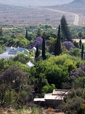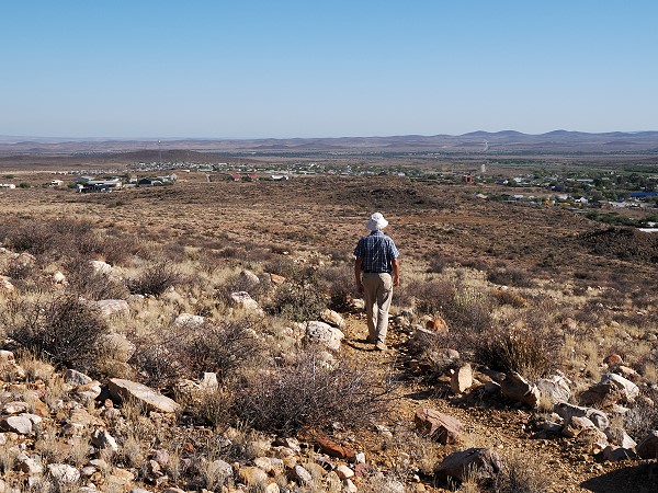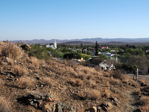 Dieses Mal sind wir endlich auch mal über den Koppie trail gelaufen, der vorbei an 100 verschiedenen Pflanzenarten der Karoo führt und an der Bergsig Street oberhalb der Hauptstrasse startet. Irgendwie hatten wir es bisher nie hinauf auf den Hügel geschafft, wenn wir im Ort waren. Dieses Jahr wurden wir von Marina und Hans zum Frühstück eingeladen, an einen ganz besonderen Ort den ich weiter unten beschreibe. So machten wir uns, am letzten Tag des Aufenthalts, am Morgen zusammen mit Hans auf den Weg. So konnten wir das leider nicht zu anderer Tageszeit noch einmal widerholen. Wir müssen also noch einmal zurück nach Prince Albert, was uns sicher nicht schwer fällt.