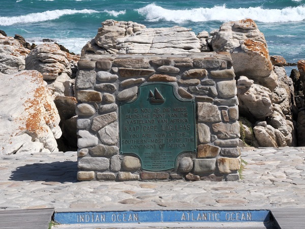 Der geografisch definierte südlichste Punkt Afrikas befindet sich auf den Koordinaten etwa 34°49'58" S, 20°00'12" E. Hier treffen der Atlantische Ozean im Westen und der Indische Ozean im Osten aufeinander. Viele Touristen glauben aber immer noch, der Süden Afrikas würde sich am Cape Point befinden. Immer noch vorhanden ist der Steinhügel mit einer Kupfertafel, der die genaue Position markiert.