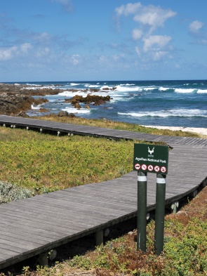 Der südlichste Punkt Afrikas ist heute leicht zu erreichen. Wo früher vor allem Weite, Wind und ein einsamer Steinmarker dominierten, finden wir nun gepflegte Holzwege, Beschilderung und Parkplätze.