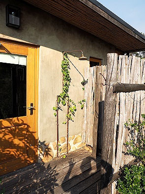 Es gibt gutes WLAN und ausreichend Feuerholz, um den selbst gemauerten Kolkol zu beheizen. An den Folgetagen wurden wir nicht mehr von den Gänsen besucht, so konnten wir am Abend das heiße Bad mit dem frischen Wasser genießen. Laut Betreiber wird das Wasser alle zwei Tage in das darunter liegende Rebenfeld abgelassen und aus der Quelle neu eingefüllt, nicht unbedingt Standard bei einigen anderen Unterkünften.