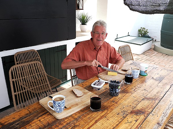 Da wir am Mittag im Willowmore Padstall Kapoed schon gegessen hatten, haben wir am ersten Abend das Haus genossen und nur Brot mit Käse und Oliven im Esszimmer verspeist. Draussen war es in der Nacht etwas frisch und windig. Dazu tranken wir einen Raka Quinary, der hat wie immer sehr sehr gut geschmeckt.