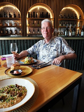 Nach dem ersten Besuch im Jahr 2024, der uns begeisterte, waren wir auch diesmal wieder zum Lunch im Kapokbos. Die Kellner kannten wir noch, auch das Ambiente hatte sich nicht verändert, nur die Chefin war schwanger. Wir bekamen wieder einen schönen Tisch auf der Terrasse mit Blick auf den Rosengarten. Da wir an einem Sonntag hier waren, waren Tasting und Verkauf geschlossen, so dass es noch entspannter war.