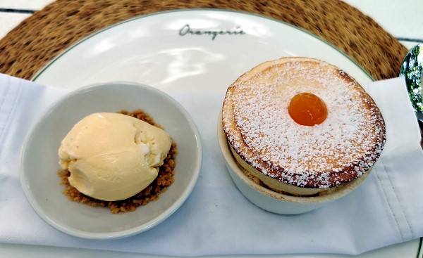 Auch der Nachtisch war schon klar, denn hier können sie gut Soufflés. Und das Angebot zum Nachtisch war ein wunderbares Aprikosen Soufflé mit selbstgemachtem Mandeleis. Ein Traum.