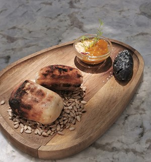 Die Vorspeise bestand aus drei Sorten kaltem Smoked Venison mit feinen Saucentupfen und ansprechend dekoriert. Dazu brachte uns der Kellner sogar zwei Weißweine zur Auswahl und der Knaller war dazu der recht teure Amphora Weiß aus dem Quevri. Dieser kam allerdings nicht wie in Avondale aus Georgien.