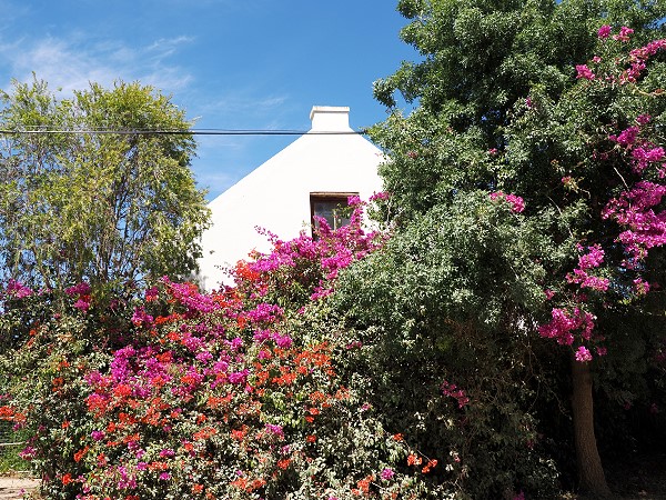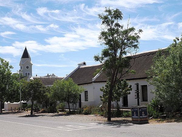 McGregor ist berühmt für seine kapländische Volksarchitektur. Ein Spaziergang durch die Straßen, insbesondere die Voortrekker Street, ist wie der Besuch eines lebendigen Museums. Das Stadtbild wird von traditionellen, weiß gekalkten Häusern mit Reetdächern geprägt. Viele dieser Gebäude stammen aus der Mitte des 19. Jahrhunderts. Ein hübsches kleines Anwesen stand gerade zum Verkauf, das hätte uns gefallen. Auch das am Südrand liegende ehemalige Township ist sehr gepflegt, neuere Häuser dort haben sogar 2 Etagen.