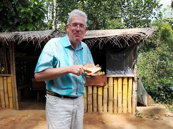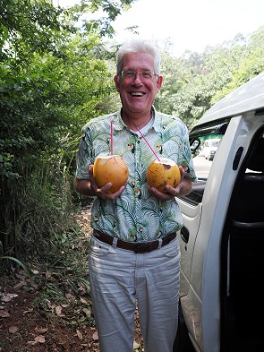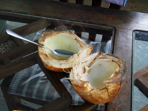 Wir hatten gleich in der ersten Unterkunft jeden Morgen eine Kokosnuss zum Frühstück, die niedlich als Maus dekoriert war. In einer anderen Unterkunft bekamen wir eine Elefanten-Deko. Eigentlich wollten wir jeden Tag eine trinken, was nicht ganz gelang. Viele Unterkünfte bieten sie gar nicht an, da muss man unterwegs an einem Stand stehen bleiben und sie dort schlürfen. Uns ist auch passiert, dass wir auf Nachfrage eine bekamen, die dann aber mehr als das dreifache als am Straßenstand kostete.