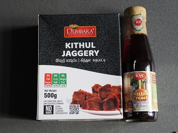 Der Sirup Kithul Treacle wird aus dem Saft der Kithul-Palme (Fischschwanzpalme) gewonnen. Der Saft wird stundenlang eingekocht, bis er diese tiefbraune Farbe und ein Aroma entwickelt, das an Karamell, Malz und ein wenig an dunklen Waldhonig erinnert. Wir haben uns ein paar kleine Flaschen davon mitgebracht, er schmeckt sehr lecker und nicht einfach nur eindimensional süß.