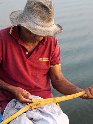 Frische Zimtrinde bekommt man selten, aber wir hatten Glück: Vom Ast wird zuerst die äußere, raue Borke abgeschabt. Darunter kommt eine zarte, rötlich-braune Schicht zum Vorschein. Mit Präzision ritzt man die Rinde längs ein und zieht sie dann in hauchdünnen, fast papierartigen Streifen ab. Sie verströmt einen erdigen, warmen Duft: das unverwechselbare Aroma von echtem Ceylon-Zimt.