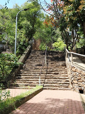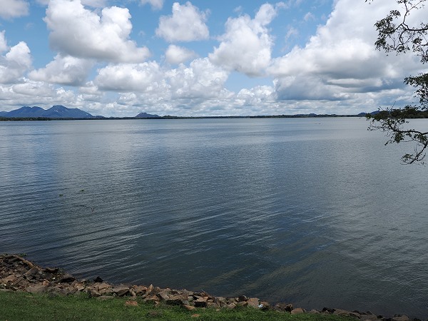Ein Highlight der Fahrt ist die Passage entlang eines sogenannten Wewas, dem Kala-Wewa-Stausee. Diese antiken Wasserspeicher, die oft wie natürliche Seen wirken, liegen ruhig in der Landschaft und spiegeln den weiten Himmel wider. Die Straße führte uns etwas erhöht durch eine schattige Allee aus alten Bäumen und weiter bis zum Parkplatz unterhalb vom Tempel.
