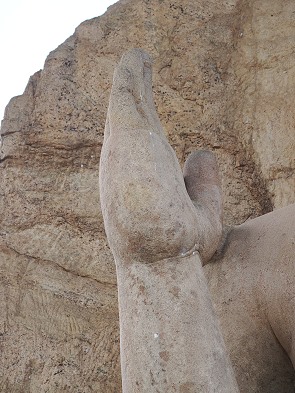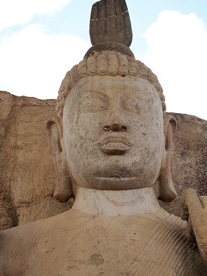 Sobald man das Gelände betritt und von einer Terrasse die tiefer stehende Buddhastatue erblickt, fällt die außergewöhnliche Detailverarbeitung ins Auge. Die feinen Falten des Gewandes wirken trotz des harten Gesteins beinahe wie fließender Stoff. Eine Besonderheit ist die Haltung der rechten Hand, die in der sogenannten Asisa Mudra erhoben ist, um den Gläubigen Segen zu spenden.