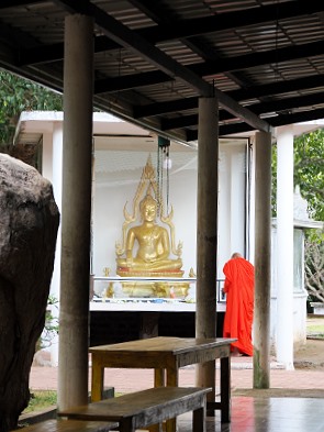 Neben der ikonischen Buddha-Statue beherbergt der Tempel antike Ruinen und kleinere Stupas, die zu weiteren Entdeckungen einladen. Ein Sonnenskink ließ sich von unserer Anwesenheit nicht stören.