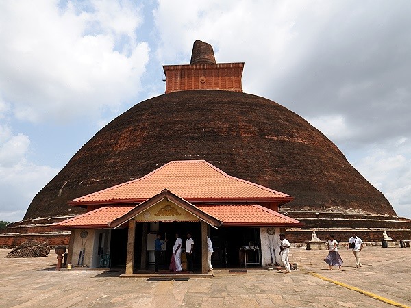 Das Ergebnis war ein Bauwerk, das die Welt in Staunen versetzte. Zum Zeitpunkt seiner Fertigstellung war der Jethawanaramaya der höchste Stupa der Welt und, nach den zwei höchsten Pyramiden von Gizeh das dritthöchste Bauwerk der Menschheit überhaupt. Seine ursprüngliche Höhe von etwa 122 Metern war so enorm, dass es fast 100 Millionen gebrannte Ziegel benötigte, um ihn zu errichten. Heute nach Restaurierungen ist er nur noch ca. 71 Meter hoch und ragt weithin sichtbar über den grünen Baumkronen der Trockenzone gen Himmel. Irdendwan hat die Spitze, die wohl die Flamme der Erleuchtung symbolisierte, nachgegeben, ein Bruchstück davon liegt heute noch auf der Plattform neben dem Ziegelkoloss.