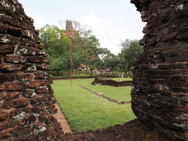 Nach dem Besuch des Jethawanaramaya war es nicht weit bis zu den markanten Ruinen des Jetavanarama Image House in Anuradhapura in einem Park auf der anderen Straßenseite. Dieses Bauwerk war einst eines der größten seiner Art auf der Insel und beherbergte einst eine monumentale Buddha-Statue.