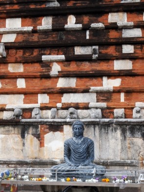 Wir haben den Platz und die Stupa einmal umrundet, die Steine waren heiß unter den Füßen. Ein paar Languren beobachetetn uns, sonst war nicht viel los hier, ganz im Gegensatz zum viel besuchten Ruwanweli Maha Seya und Thuparamaya.